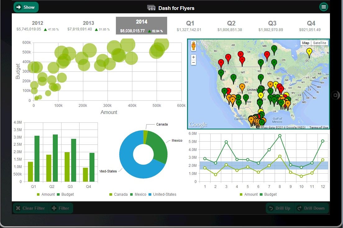 - Track information on sales, customers, operations and financials